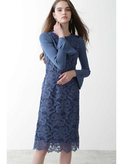 ケミカルフラワーレースタイトワンピース