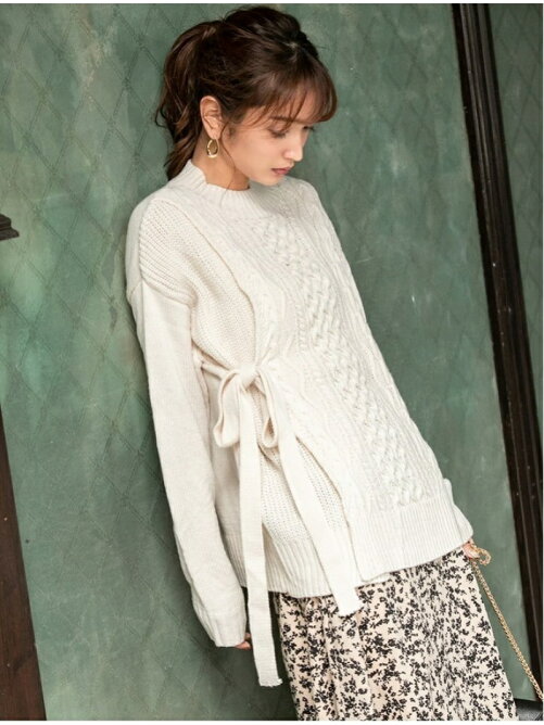 【インスタグラマーコラボ】サイドリボンデザインケーブルニット