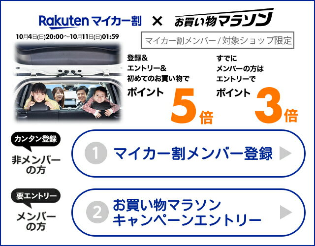 | マイカー割からのお知らせは、楽天のサービス(お買い物・プレゼント応募等)をご利用いただいたお客様、ならびに配信のお申し込みをいただいたお客様にお届けしております。 | | ■送信時点の情報をご紹介しているため、メールを読まれた時点で商品内容の変更や売り切れとなっている可能性もございます。 | ■このメールは送信専用メールアドレスから配信されています。ご返信いただいてもお答えできませんのでご了承ください。 ご質問等のある方はこちらのヘルプページをご参考の上、解決しない場合は楽天市場へお問合せください。 | | ■本メールでは会員限定のキャンペーンや楽天グループ、またはその他の企業のお得な情報等をお送りしています。不要な方は配信停止ページから停止ください。 | | ■配信先の変更・停止は、こちら。 | | ■個人情報の取り扱いについては個人情報保護方針をご覧ください。 | |